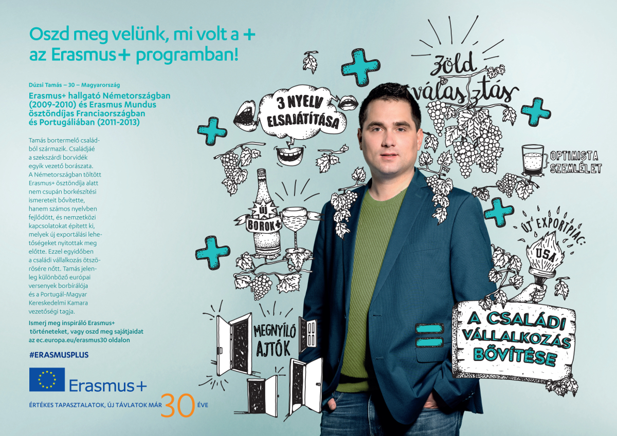 Ifj. Dúzsi Tamás szekszárdi borász az Erasmus+ program támogatásával tanult Németországban, később eljutott Franciaországba és Portugáliába is, és sok olyan embert ismerhetett meg, akik munkájában inspirálták.